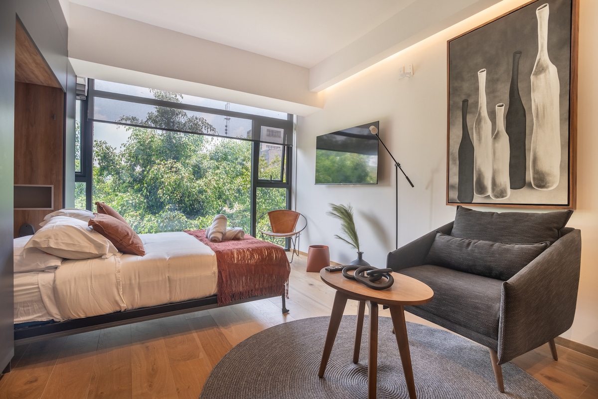 Vive una experiencia genuina en uno de los barrios más icónicos, llenos de riquezas culturales y sociales dentro la Ciudad de México. Sumérgete en un proyecto enfocado al arte; en donde diferentes artistas exponen su obra auténtica. Ubicado en el corazón de Roma-Condesa, a un par de cuadras de Amsterdam y Parque México, rodeado de boutiques, restaurantes, cafeterías, bares y otros lugares de interés. Enamórate de un espacio nuevo diseñado y amueblado pensando en tu comodidad con A/C