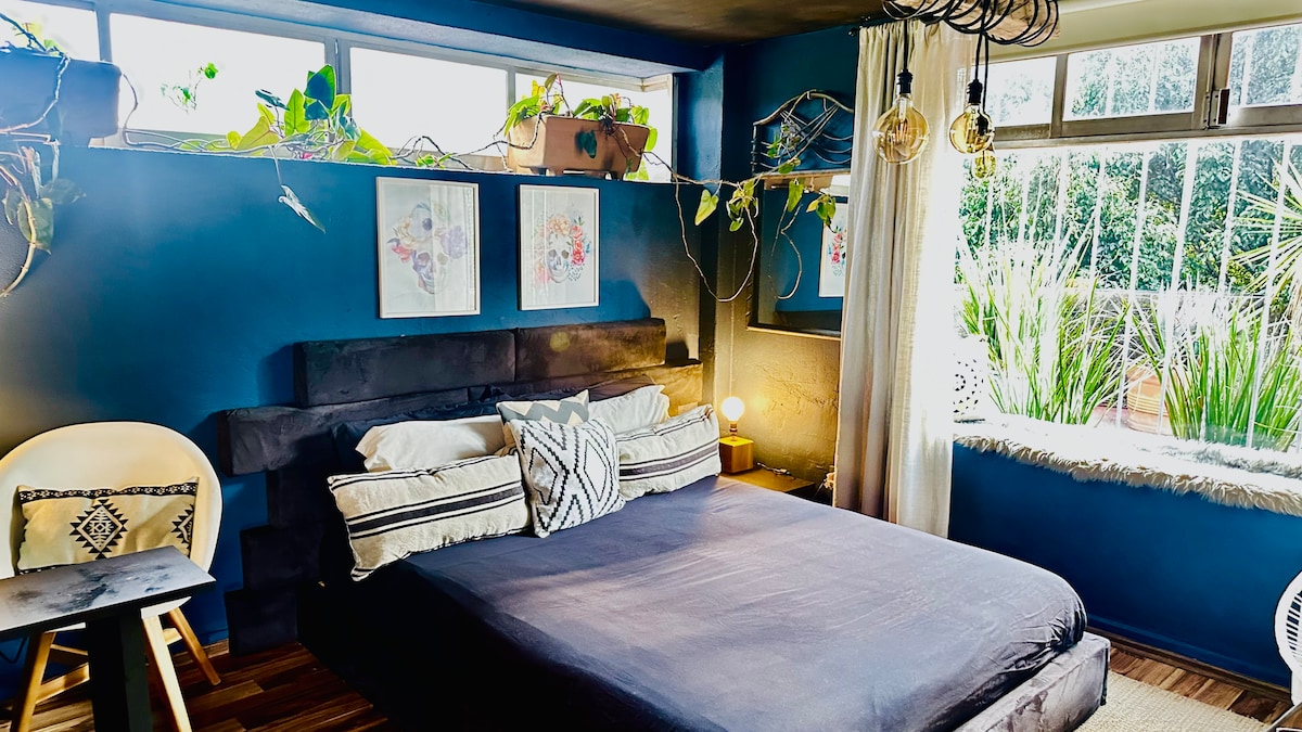 Discover our cozy Airbnb in the Roma Sur neighborhood of Mexico City. With traditional and warm decoration, this small but tranquil space offers you comfort and authenticity. Additionally, it features a rooftop for sunbathing, equipped with loungers for your total relaxation. Don't miss out on the local market that sets up on Saturdays, where you can enjoy a variety of fresh and authentic products. Located close to everything, you can easily explore the vibrant culture and city life.