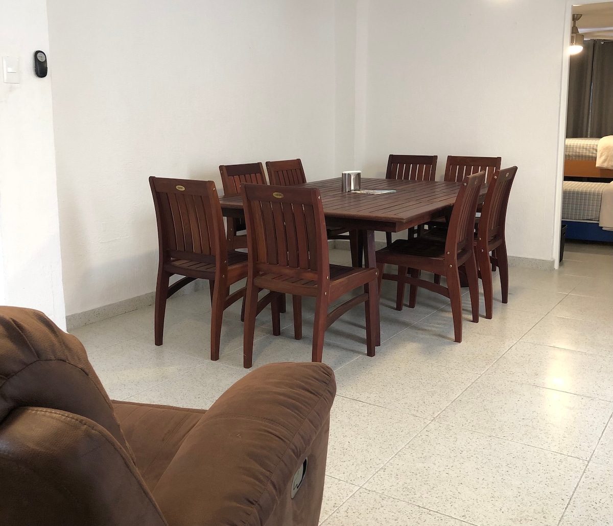 Mi departamento es un espacio de 78 m2 de dos recámaras completas, una con cama matrimonial y la otra con 2 camas individuales, además hay un sofá cama en la sala. El espacio consta de cocina completa y equipada, comedor para 6 personas, sala con smart TV y dos baños completos. La sala y los dormitorios cuentan con aire acondicionado y ventiladores de techo. Hay conexión de internet rápido. El departamento cuenta con acceso autónomo, y un cajón de estacionamiento para un coche de 12.5 m2