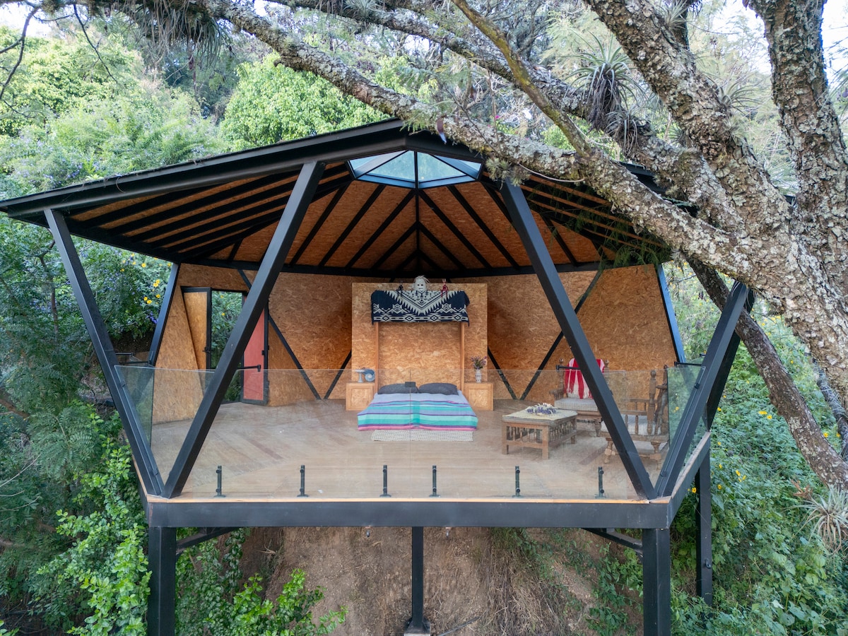 Treetops Atesquelites 森林中的完整小木屋