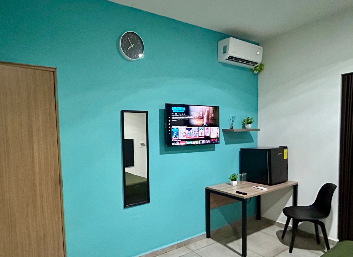 ⭐️ Suite King ideal para parejas ⭐️ Disfruta una suite amplia y elegante con cama King Size y terraza privada, perfecta para una escapada romántica o un descanso especial en Cancún, dentro de un hermoso hotel boutique con área de alberca y camastros. Ubicada a 11 min de la playa y 8 min del centro, combina comodidad y excelente ubicación. Cuenta con cama King Size, A/C, WiFi rápido, Smart TV con cable y apps, terraza privada, caja fuerte y frigobar. ✅ Cancelación gratis hasta 1 día antes