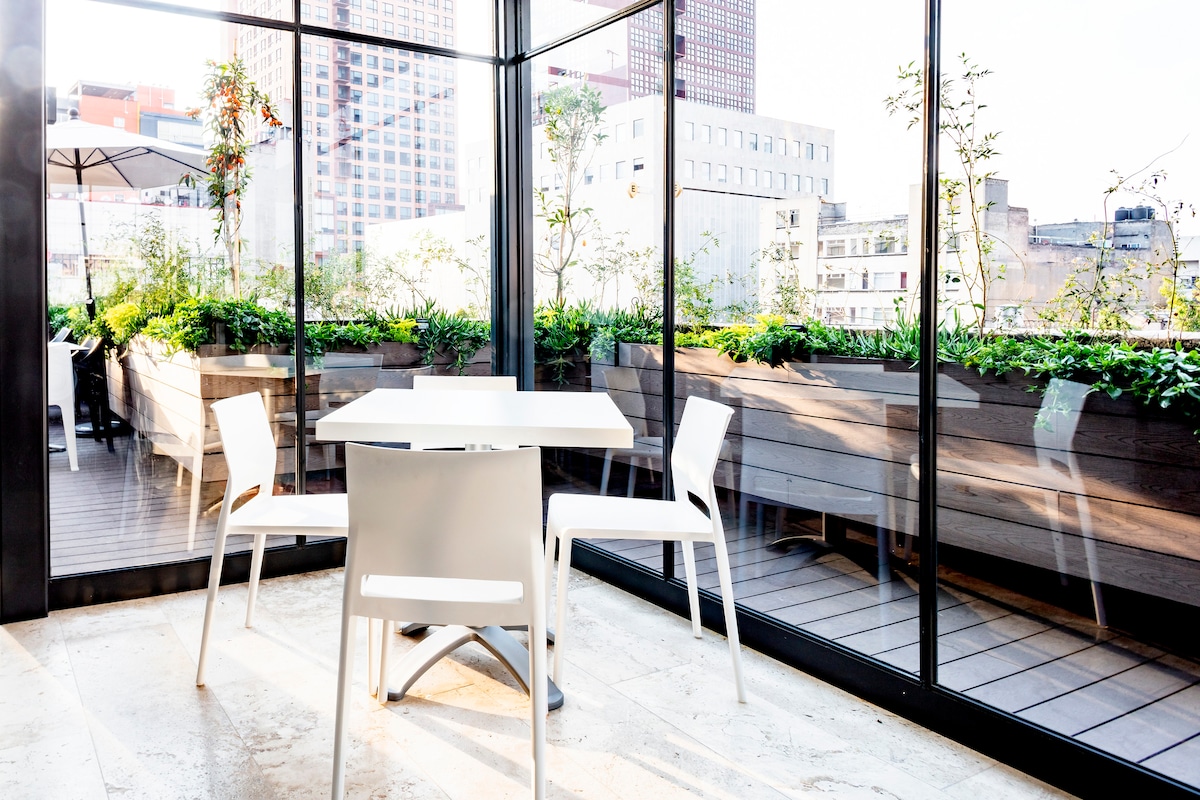 波西米亚风格的1卧室,配有屋顶泳池和厨房!