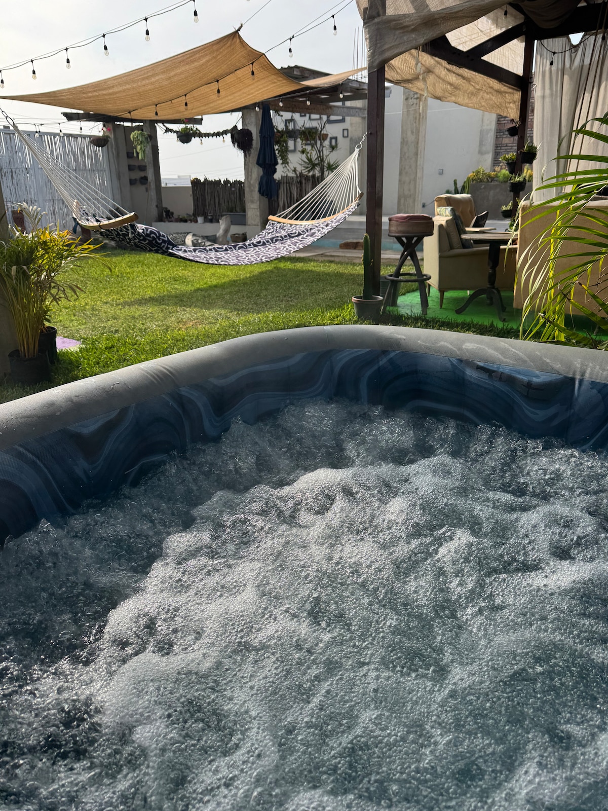 Disfruta de este motorhome que después de viajar por más de 40 años por América vino a jubilarse a este hermoso patio en el corazón del barrio de Santa Tere en Guadalajara Vive patio Diéguez con todas las comodidades modernas que soñarías tener en un camping en el corazón de la ciudad. Aquí puedes disfrutar de un espacio exterior muy acogedor que cuenta con una pila de hidromasaje climatizada, área de asador y mesa de terraza rodeado de una vegetación ideal para disfrutar las mejores veladas.