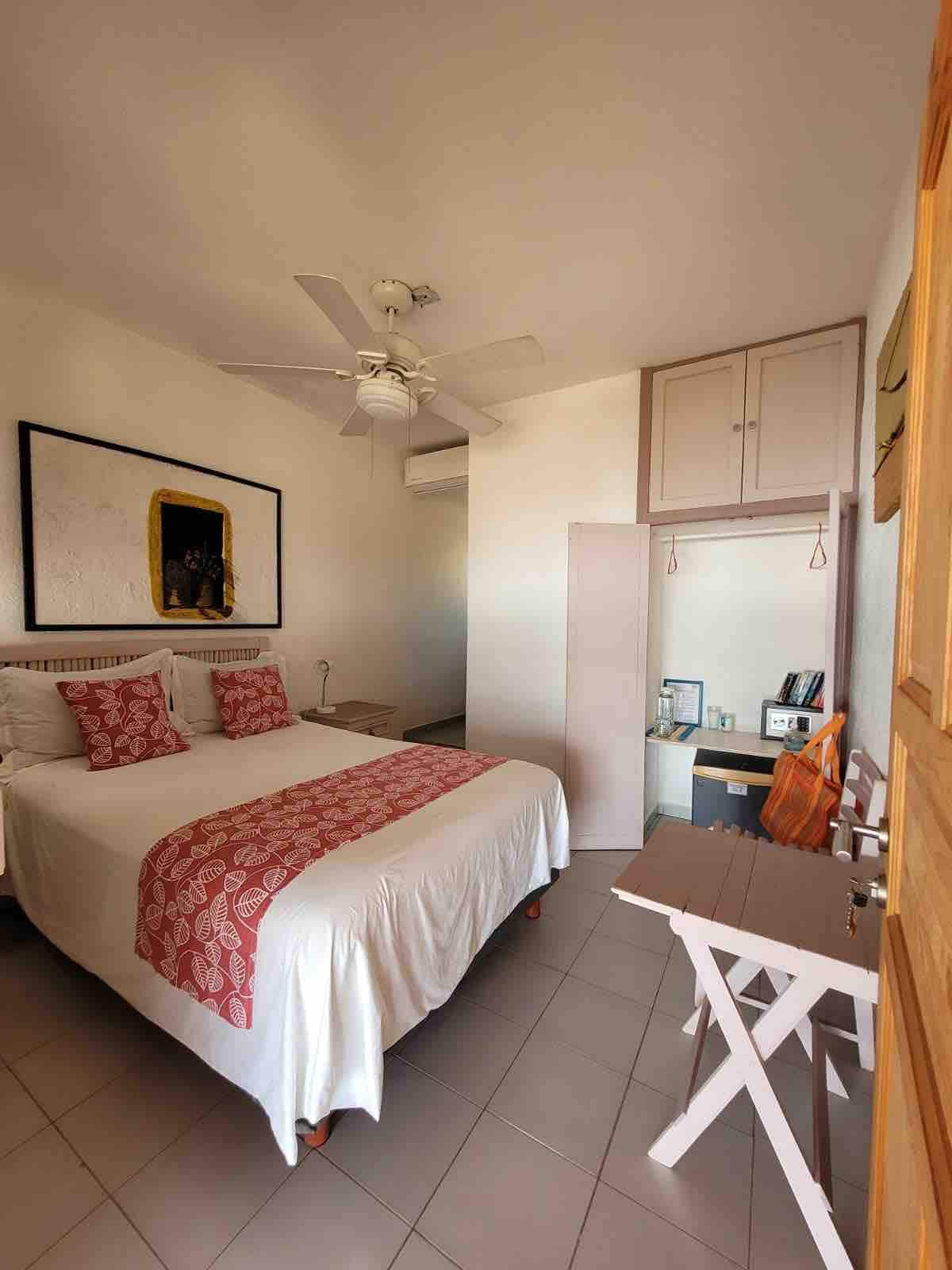 Es la habitación mas pequeña de la Posada y en ella puedes disfrutar la comodidad de su cama matrimonial con sábanas de algodón, una ducha con agua caliente si así lo deseas, refrescarte con el aire acondicionado si el calor abruma o simplemente salir a la terraza y disfrutar la brisa y la vista al mar.