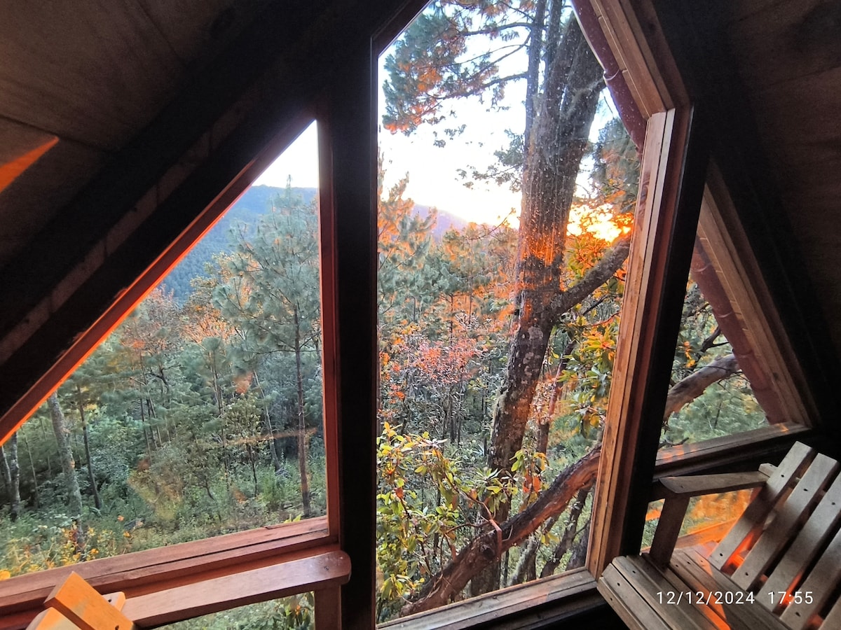 We offer an unforgettable experience and a comfortable stay. The treehouse is located in one of the most beautiful private nature preserves in Hidalgo, 2.5 hours from CDMX, surrounded by 740,000 m2 of forests, springs, waterfall, nautural pool and well, and 7 kilometers of trails. The cabin has a double bed, kitchen, bathroom, living room with fireplace. Internet & WiFi. Enjoy the dishes of our beloved community. We believe in equality. Ask about conservation activities. No parties.