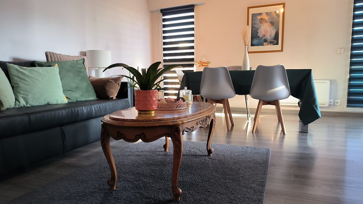 Evadez vous en amoureux ou entre ami(e)s dans cet appartement atypique. Ce sousplex offre tout le confort d'un appartement avec au rez de chaussée, sa cuisine aménagée et équipée. Une salle d'eau, un salon avec un canapé convertible offrant un lit en 140x190, une chambre avec un lit Queen size. Au sous sol, la cave a été entièrement refaite et repensée pour votre plaisir. Un SPA 4 personnes, chauffé, avec jets hydromassants et un vidéoprojecteur pour regarder vos films ou séries.