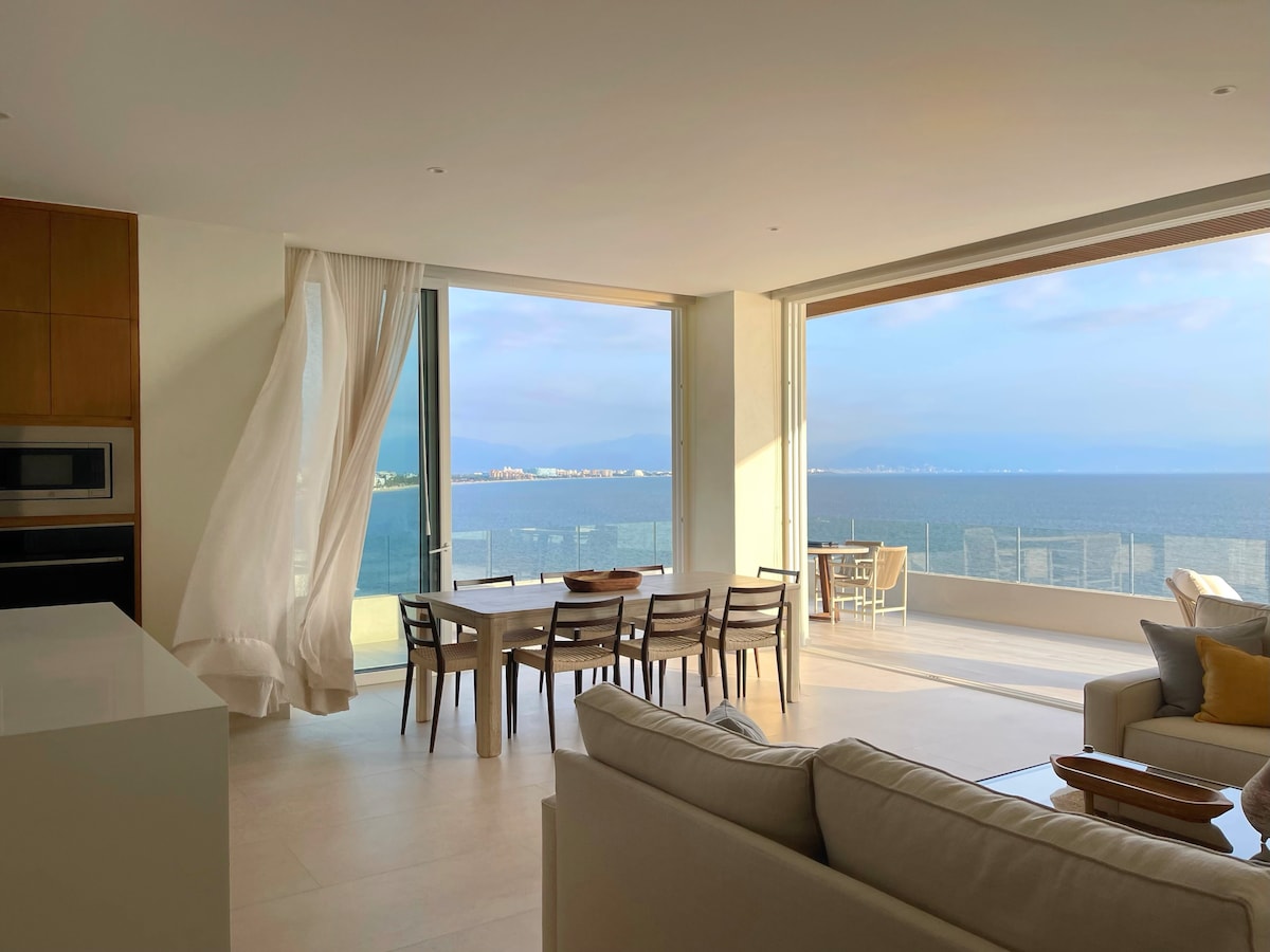 Casa Perla is a new build/ newly furnished penthouse that blends elegant design and comfort—and ocean views that refuse to be ignored. Steps from the beach, it’s perfect for a romantic escape, family getaway, or inspired remote work. Lounge on your private wraparound balcony, soak up the sun on two exclusive loungers, and let airy high ceilings and sun-filled spaces show you what true glamour feels like. Minutes from Bucerías’ art, tacos, and local culture—experience Riviera Nayarit’s finest.