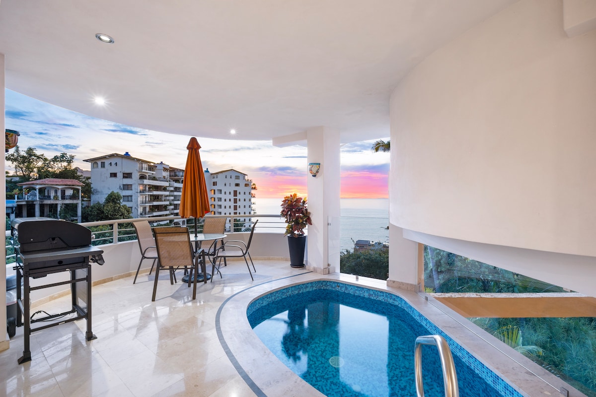 Welcome home to your MODERN 7th FL condo. Your Rooftop infinity pool w/ a BREATH-TAKING VIEW of the sea and cruise ships: simply stunning! Our space offers all the convenient amenities. Rooftop BBQ or gym with a view? You got it! All in a perfect location; only a 12-min walk to the beach, restaurants, bars, groceries, malls, cinema, and hospital. The Malecón, Romantica, and Marina are a quick 10-min drive away! YOUR dream getaway with stunning rooftop views right here in beautiful PV.