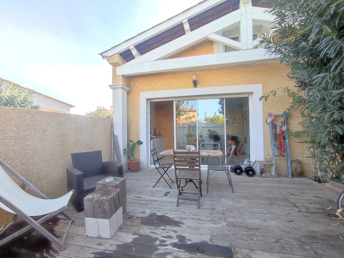 Notre petite maison est située dans le charmant village de Mèze, au bord de l'Étang de Thau, entre Montpellier et Béziers, et à seulement 15 minutes des Thermes de Balaruc-les-Bains. Vous serez à 10 minutes à pied du centre-ville et des plages. Tous les commerces sont à proximité : boulangerie, pharmacie, bureau de presse, primeur et supermarché, pour faciliter votre séjour.
