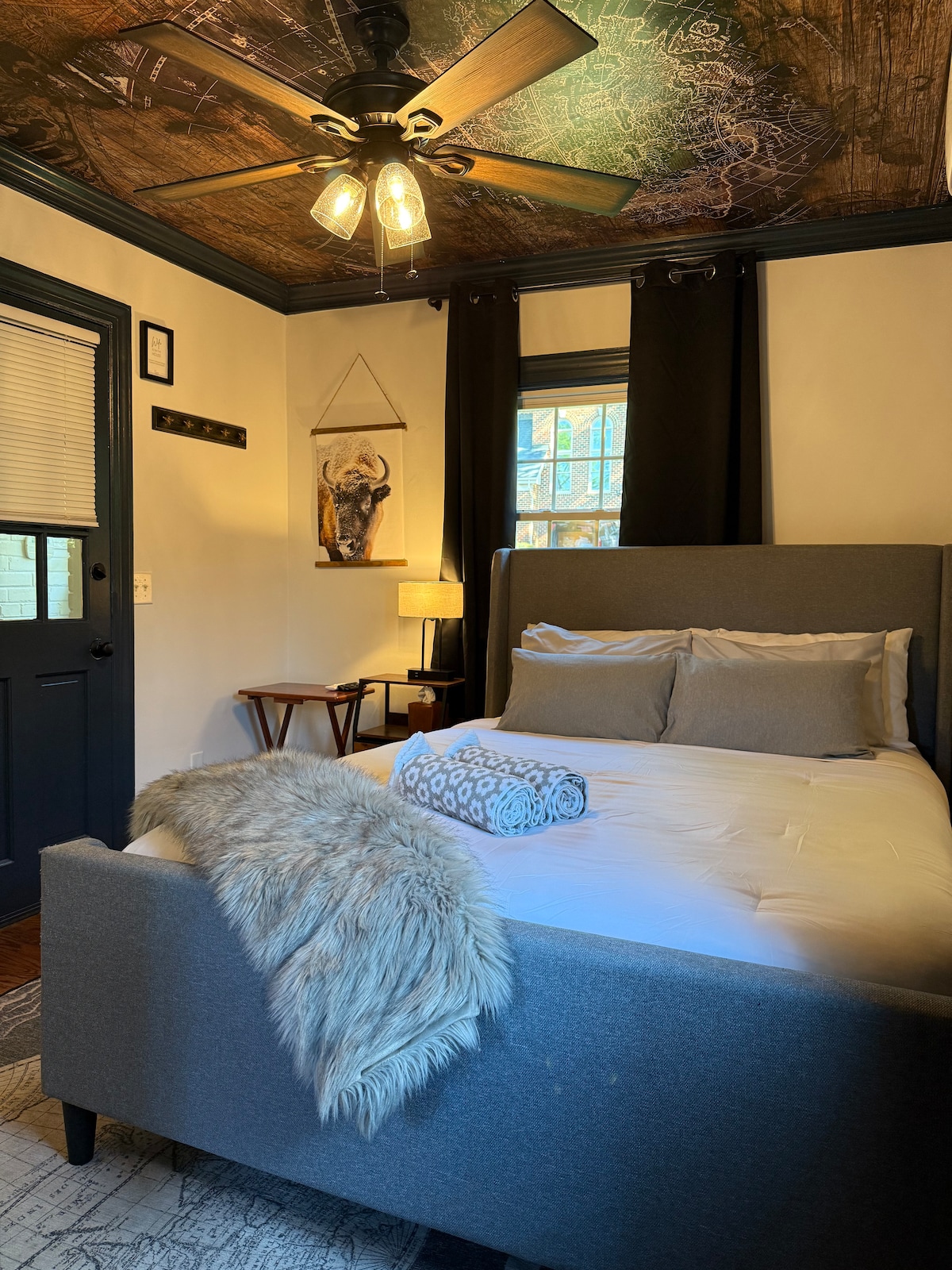 Welcome to my private carriage house retreat! This stylish and quiet guesthouse with a blend of old farmhouse and modern features is a block from the heart of the Del Ray neighborhood. Separate from the owner’s home, the sunny second-floor guesthouse combines privacy, style, and convenience to nearby shops and restaurants. Features a kitchenette, stylish sitting and bedroom with tons of light, heart pine floors, bathroom with radiant floor heating, high-speed internet, and ample storage.