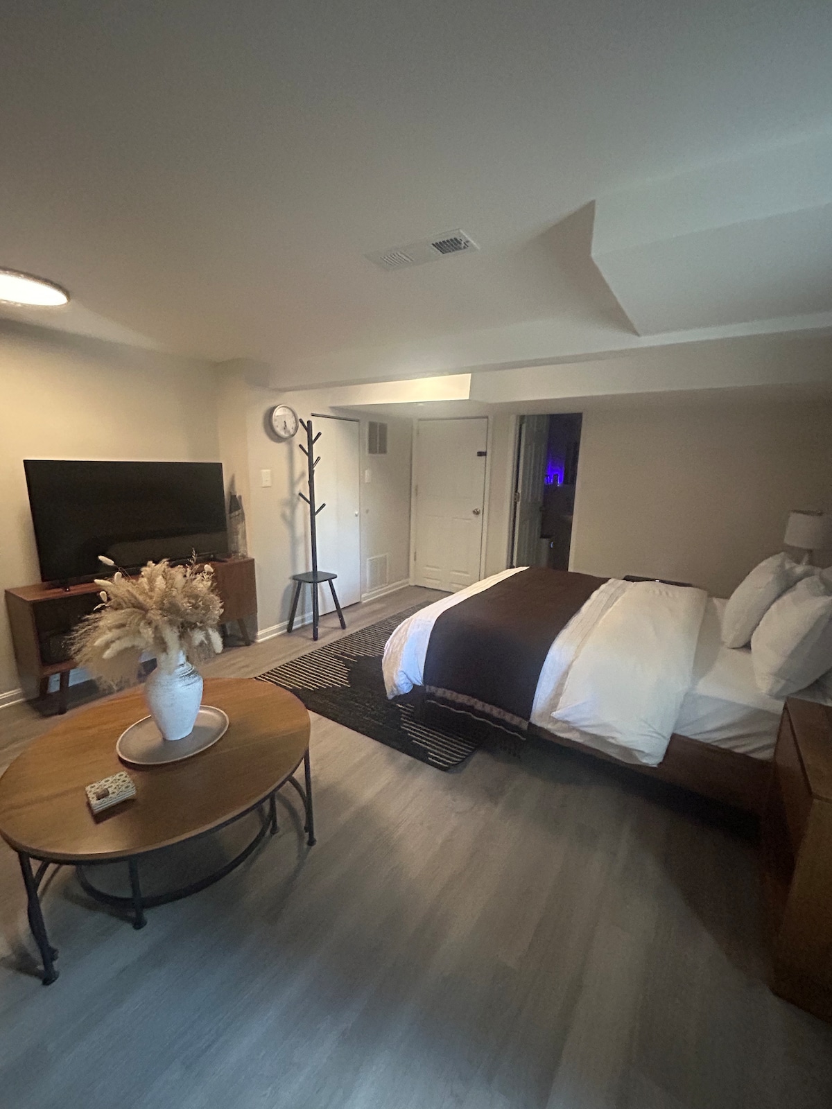 Our cozy guest studio features a full-size bed, large walk-in shower, kitchenette with breakfast nook, high-speed WiFi, private entrance, and 2 free parking spaces. Just a 5-minute walk to Huntington Metro, 5–10 minutes to Aldi & PJ’s Coffee, and 10 minutes to Old Town. VA Permit #: STL-2024-00079. WE ARE SELLING OUR HOME. DURING YOUR STAY, WE MAY REQUEST BRIEF ACCESS TO THE STUDIO OR ASK YOU TO STEP OUT FOR A SCHEDULED SHOWING, WITH ADVANCE NOTICE.