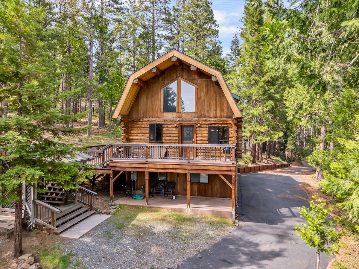 Large cabin perfect for large Family gatherings, Lake trips, getaways w/ friends or peaceful Mountain retreats. Enjoy the large Game Room to play Pool, Shuffle board & plenty to keep everyone entertained! Beautiful deck surrounded by trees w/ a fun Fire Pit to take in the Cabin vibes! Large kitchen w/ gas range, full appliances & cute coffee supplies! Ideal for long stays. Tucked away 5 min to Downtown Twain Harte, 30 min to Pinecrest, 10 min to Black Oak Casino, day trip to Yosemite+more!🌲🔥