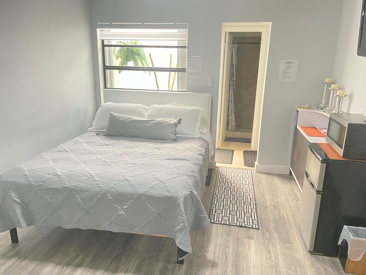 - TOTALLY PRIVATE BEAUTIFUL STUDIO Beautiful studio near everything!!! 5 minutes from the Airpot, Wynwood, Design District, South Beach, Port, Brickell, AAA, - King Size Bed - Private parking -Fully stocked kitchen also wifi, Smart Tv - 6 star hospitality - Washer and Dryer on premises to use for free - Property is 1 of 4 Airbnb on the property -$100 Pet fee -per stay. -NOTE: two pets, would be $150 per stay ( not apply for long-term stays)
