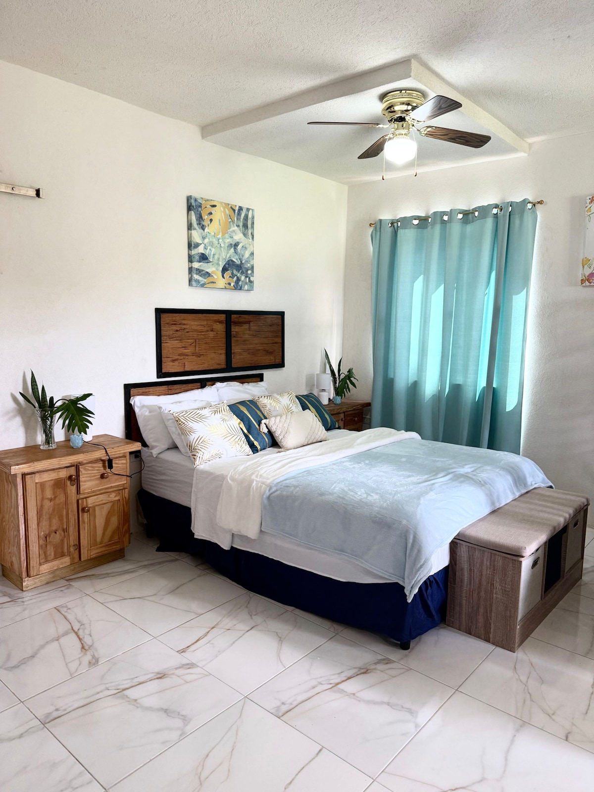 Nestled in an exclusive cul-de-sac overlooking the serene greens of the Durants Golf Course, this elegant studio apartment offers a private tropical retreat. Comfortably accommodating two adults and a child. 2-minute walk to the bus stop, offering effortless island travel, and only 7 minutes from the airport. You’re also 2 minutes from the popular Kermitt Bar, 5 minutes from Miami Beach, and 6 minutes from shopping centres, supermarket, gas station, and the world-famous Oistins Fish fry.