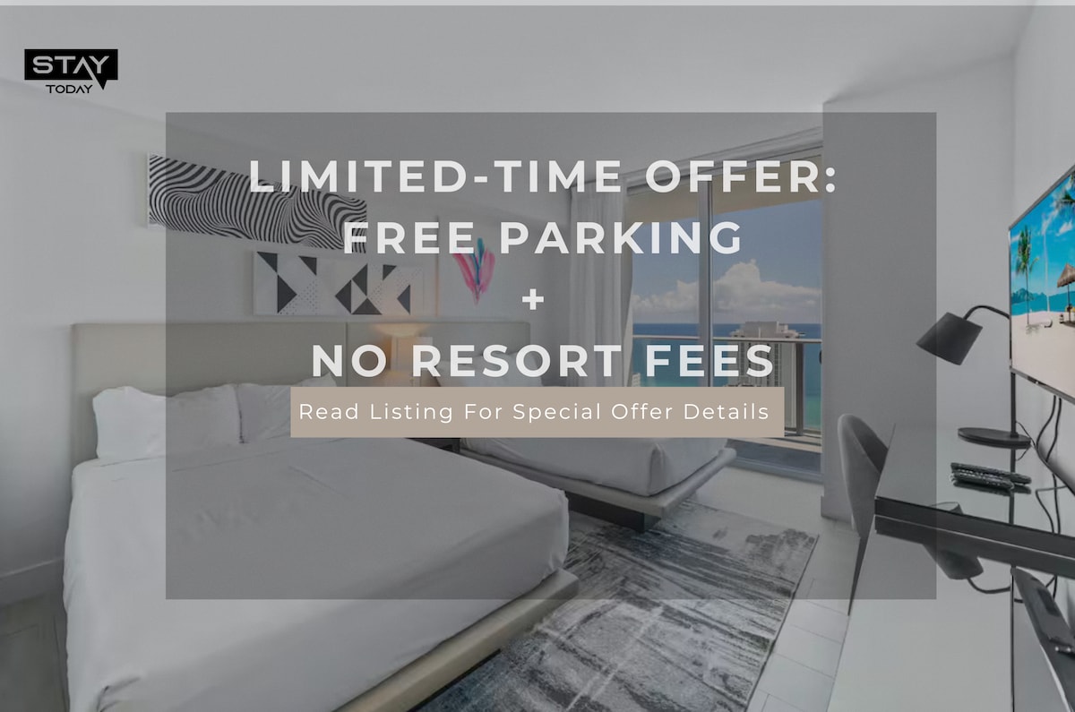 Wake up in this luxury 2 bedroom apartment. Drink your morning coffee in the huge balcony while looking at the breathtaking ocean views. FREE parking and access to resort amenities. Designer decorated High speed internet King bed and two full beds Two desks for home office Tennis and basketball courts Pool Jacuzzi Steps away from the beach and very close to shopping centers, restaurants, art galleries and attractions. Great for romantic getaways or families.