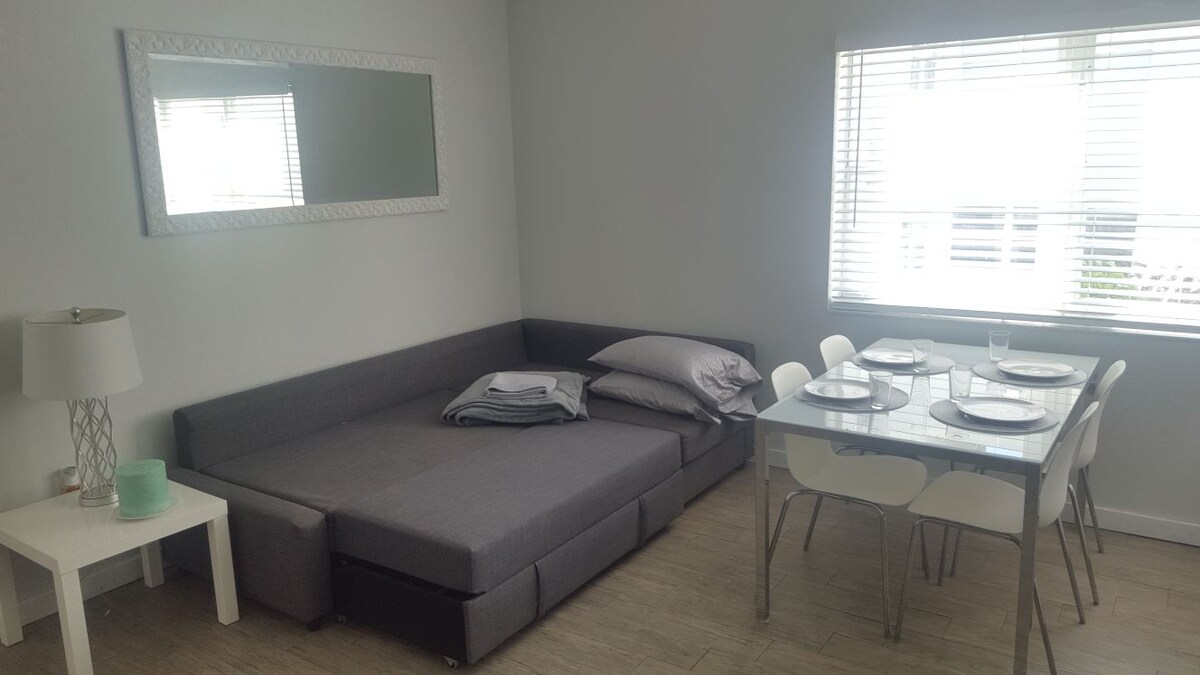 Book with the Benichay Brothers! Modern studio walking distance from the Lincoln Rd Miami Beach and the new Miami Beach Convention center. Free on site parking This apt features a Queen size bed & sofa bed. A full kitchen with stove , oven, microwave and refrigerator. Resort day passes are available for an additional charge, you can enjoy pool or beach access with a lounge chair & umbrella, at a nearby hotel guest. We worked out a 20% discount for all passes.