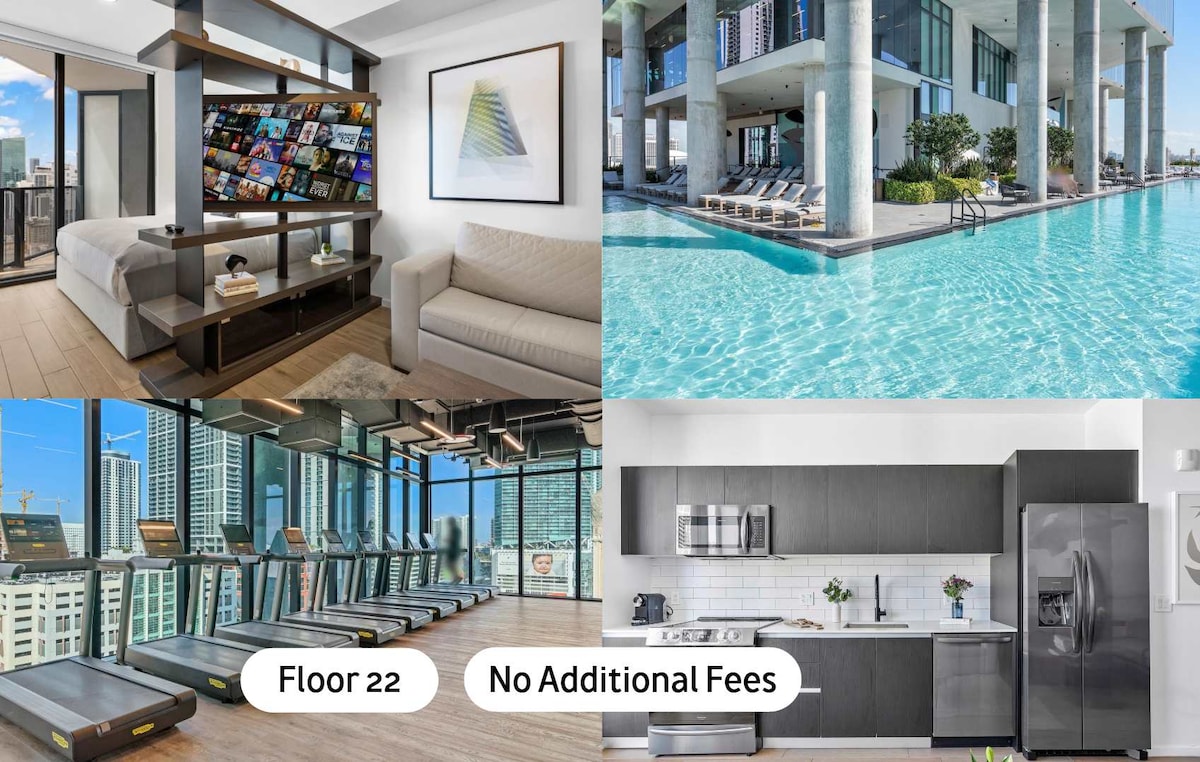 Top floor modern designer Penthouse, two bedroom, two bath, right in the heart of Miami. Enjoy style, convenience, and breathtaking views of Miami from your private wrap around balcony & take in panoramic vistas of the ocean, yachts and city. Kitchen features new stainless-steel appliances. Living room boasts brand new 4K Smart TV with dinning area. Master Bedroom has ultra comfy king size bed + en-suite, stylish Queen room both with smart TV’s. Brand new bathrooms, washer & dryer in Penthouse