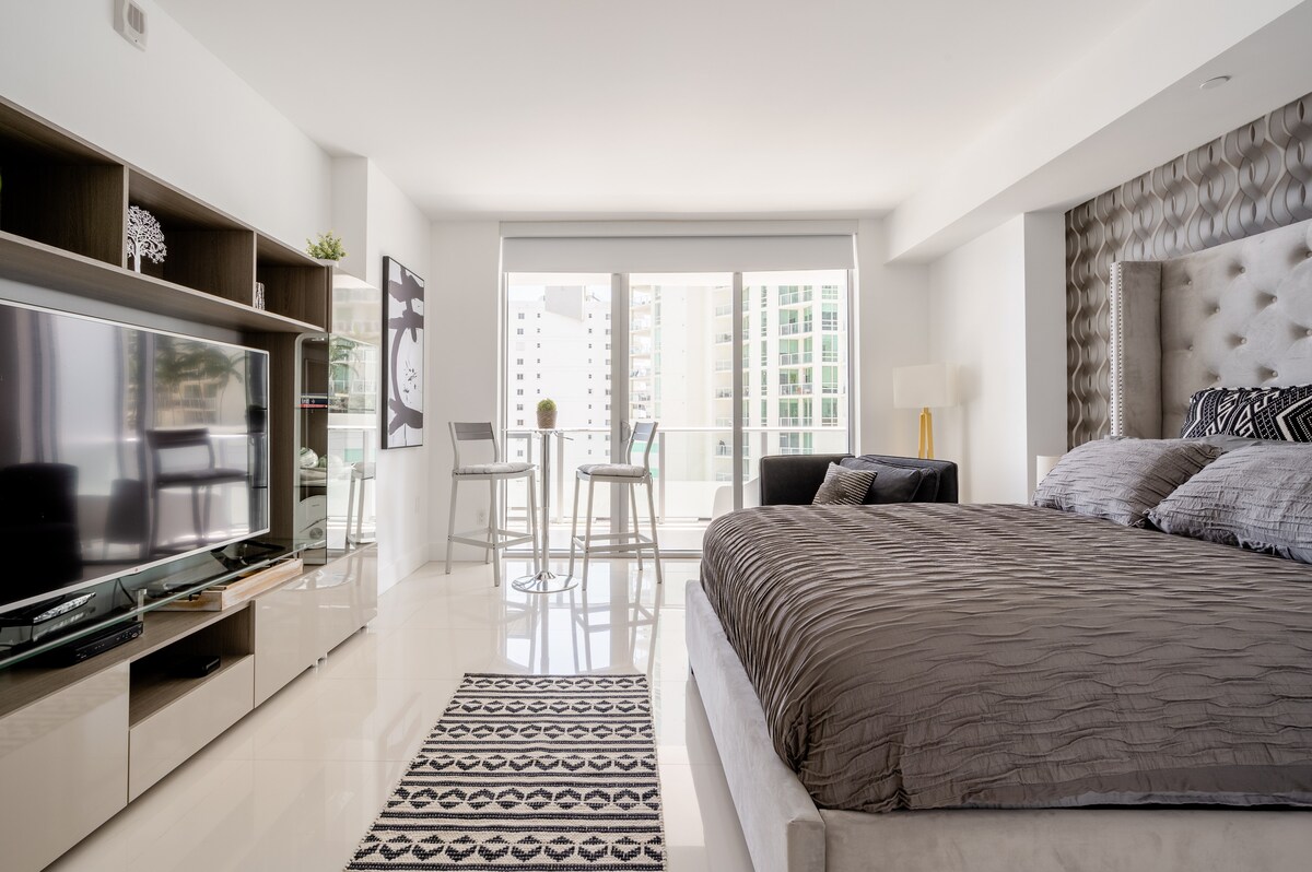 Feel right at home in this chic loft studio - AMAZING LOCATION in the heart of Downtown Miami! Stroll to great restaurants/bars, Bayfront Park, American Airlines Arena, Museum Park, Brickell City Centre Mall, Whole Foods; 5-15 min drive to/from MIA Airport, Wynwood, Little Havana, South Beach, Miami Beach & Marlins Park Stadium; Conveniently located near Metrorail & Metromover Stations. This is the ideal space for couples, solo adventurers, business & Work From Home travelers and small families.
