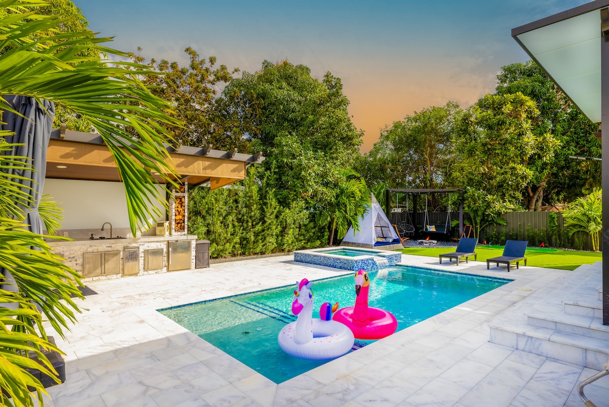 迈阿密棕榈屋,带恒温泳池和烧烤/酒吧