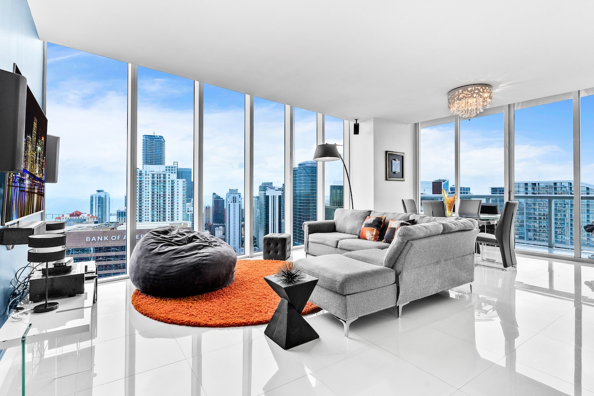 Stay with the stars above it all, in the largest and most luxurious penthouse at the Icon Residences Located almost 50 floors above Brickell, you will not miss a thing. Breathtaking day and night views from all around With more than 140 reviews with 5 stars, this unit is unbeatable. Free access to the largest pool complex in the USA plus world-famous boutique SPA IMPORTANT NOTE: Note that the outside pool will be closed Monday through Thursday for further notice. Same building as W Brickell!