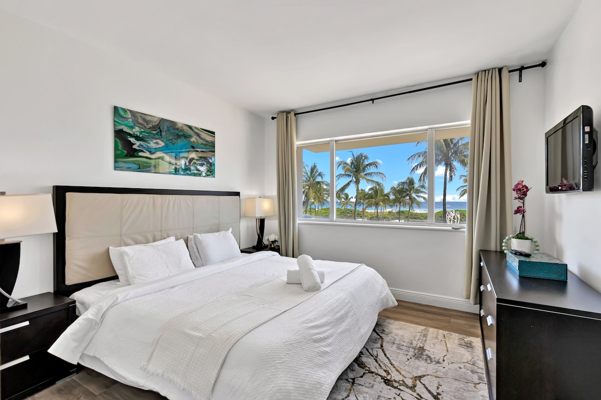 Welcome to Pure Miami Beach! Escape to this modern beachfront studio in sunny Miami Beach, Florida, with breathtaking 180° ocean views. Relax in a plush king-size bed, stream on a 65” 4K Samsung TV, or work with private 300mb WiFi and ethernet connections. Stay fit in the renovated gym, then unwind by the sparkling pool with direct beach access, lounge chairs, and a tiki bar for tropical drinks and bites. Free parking, luxury finishes, and endless ocean vibes make this the ultimate getaway!