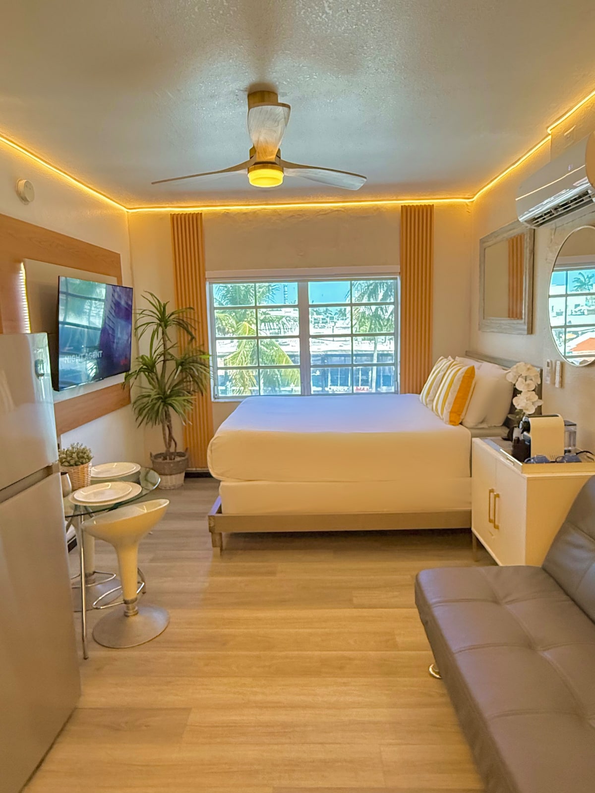 Experience the allure of our remodeled boutique studio, tucked away in the heart of vibrant South Beach. Step through the private entrance on 7th and Pennsylvania and embrace the perfect harmony of privacy and convenience. Our attentive 24-hour concierge is committed to ensuring your utmost comfort and satisfaction, offering personalized recommendations to enhance your stay. Keep in mind our windows do not open bc of safety!! Also this unit measure 300 square feet, which is perfect for a couple