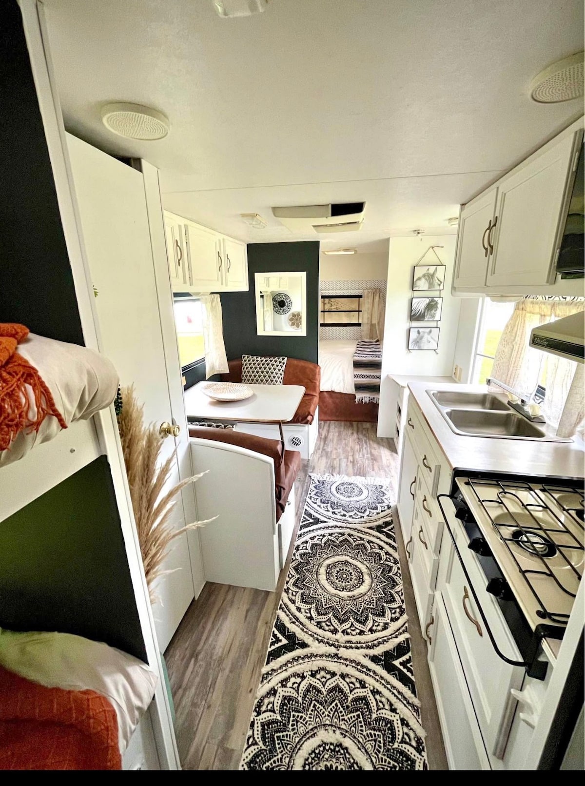 Walk into the door of a old country farmhouse it feels kinda like grandmas. With warm touches, antiques and a unique twist of modern along with old floors, sweet treats and quilts. It is comforting to sit by a modern fireplace and a relaxing countryside. A big desk space in the kitchen if you need a workspace. Come and sit down and take the pressure off of life kicking back at this Grandma’s farmhouse special.