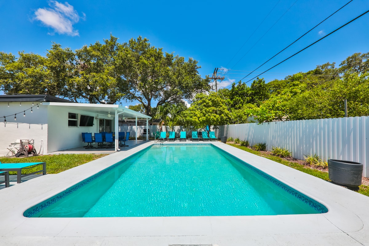 This very spacious upscale home has 4 bedrooms/2bathrooms has 9 beds. Approx. 4 min drive 2 Hard Rock Stadium, a mile frm Top Golf Close 2 all major highways leading 2 Wynwood, Design Destrict Approx 15 min drive to/frm S Beach 15 min drive 2 Mia Airport/Shopping with variety of cultural Food Pool table w/2 video arcade games. Very open spacious layout w/ lots of lighting Open layout kitchen & BBQ grill, swing set, HUGE bluetooth speaker,16+lounge chairs seating by HEATED pool GAMES LOTS OF FUN!