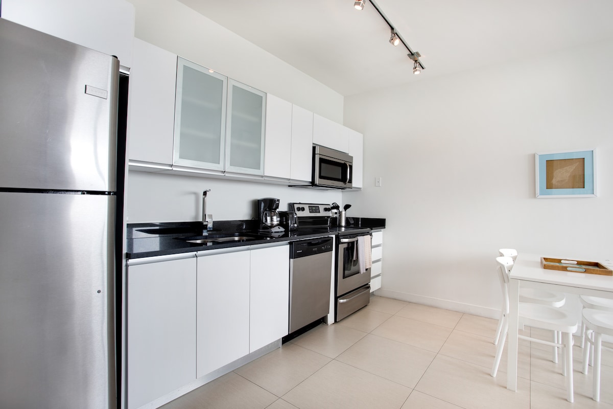 宽敞的迈阿密海滩2卧室公寓,带厨房和泳池