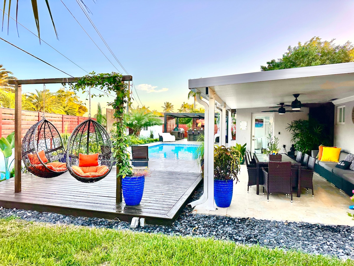 Beautiful & Modern 4/3 Canal House! completely renovated. Go Kayaking through the Canals.. Enjoy the views of the backyard and canal with jumping fish all day, House is in a centric and quiet neighborhood. Amazing backyard & terrace with a BBQ, 2 Kayaks provided for Guest. Home is near nice restaurants and close to main Highways.. ✔️15min from Miami International airport ✔️25min - Downtown Miami ✔️ 30min - Miami Beach ✔️10-15min - Dadeland Mall & Merrick Park Come Relax at our Paradise Home!