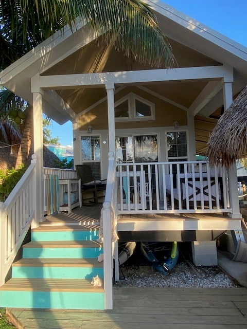 Modern beach 'Tiny House" cottage on Canal in key largo. Great location for boaters, fisherman and includes 20ft private dock. Great area to kayak, paddle board or fish. Private Tiki hut just steps from the water. Two kayak's included for your use. This is great community which includes private ramp and associotion pool for homeowners. Very close to private beaches only accessible by boat. Well behaved pets allowed