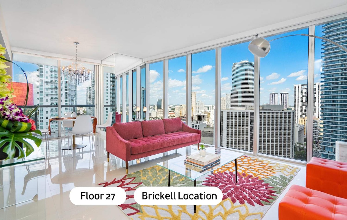 This Unique and Deluxe 5-star Condo 2B/2B, Fully Equipped and located in the same building as W Hotel, Icon Brickell, on the 46th floor with access to the biggest SWIMMING POOL in town. The Icon is located on the mouth of the Miami River on the sea, with amazing views of the sunrise in the morning and sunsets in the dusk. Steps from downtown/restaurants, and nightclubs. Six miles from Design District/South Beach/MIA. THIS IS THE PLACE TO STAY