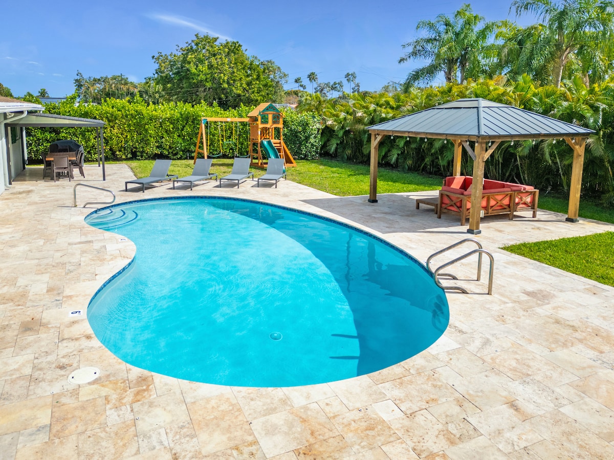 "This is our second year at this location and we love it Public targets are close by and the beach too!" - Kelly, March '24 Discover your dream retreat in this luxurious 4-bedroom, 3-bath villa, where spacious open-concept design meets natural light and a top-tier kitchen. Featuring a heated, custom-lit pool, alfresco dining, and a cozy lounge area. ☆ Large fenced-in backyard with a gazebo ☆ Hollywood Beach is 15 min away ☆ Custom-lit heated pool ☆ Hard Rock Hotel and Casino 15 min away