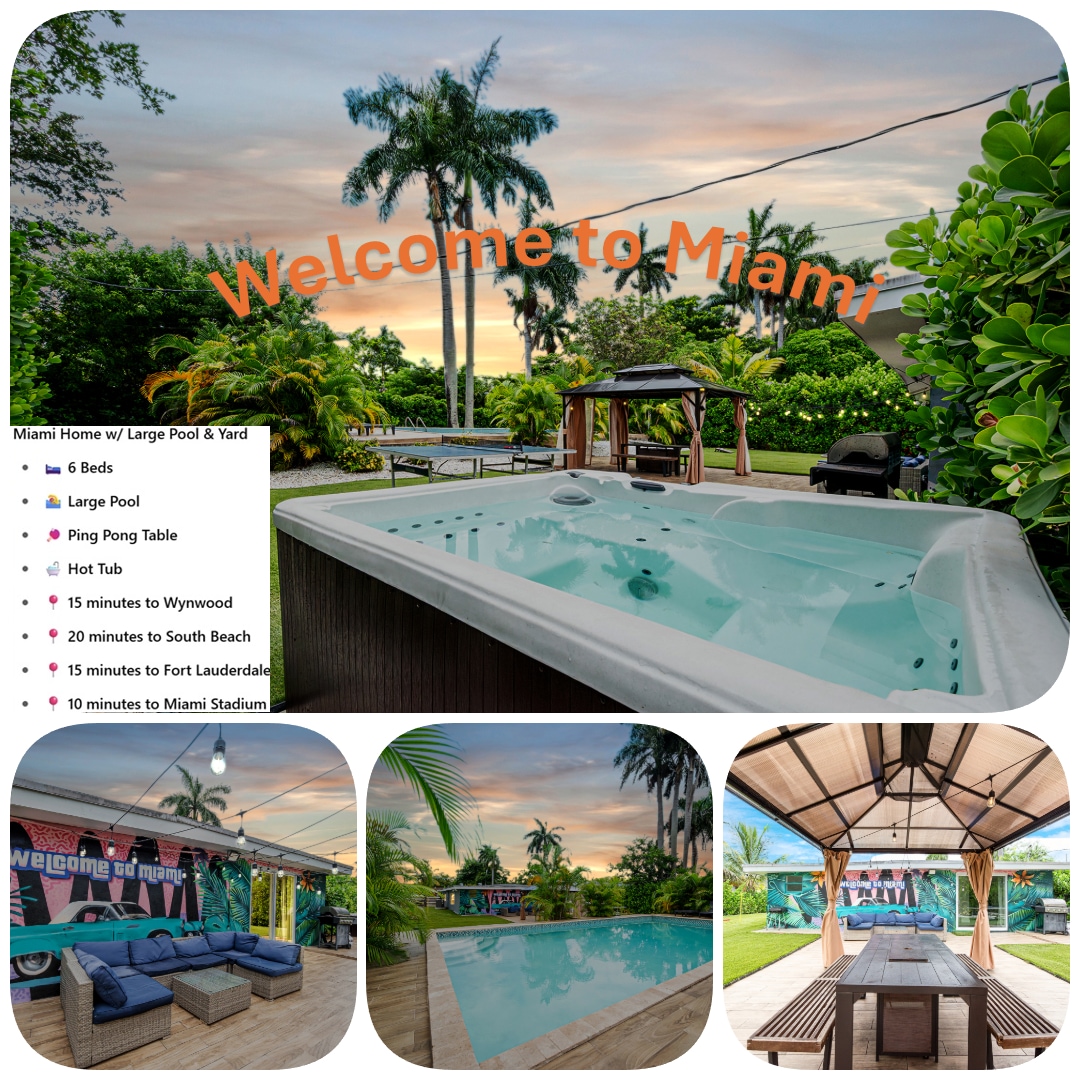 "This house was everything it seems and more!" - June, 2024, Brittany. Discover a stunning villa renovated in 2022! It features 4 spacious bedrooms, 2 stylish baths, and a bright open living area with a modern kitchen. Enjoy the outdoor dining area and gazebo for relaxing days. We can't wait to host you! ☆ Completely Renovated in 2022 ☆ Heated Pool and Gazebo ☆ Hollywood and Hallandale Beach - 15 minutes ☆ Spacious outdoor dining space with lights and fan We always available to assist!