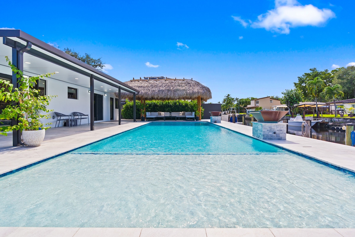现代泳池房源,位于劳德代尔堡国际机场附近的湖畔
