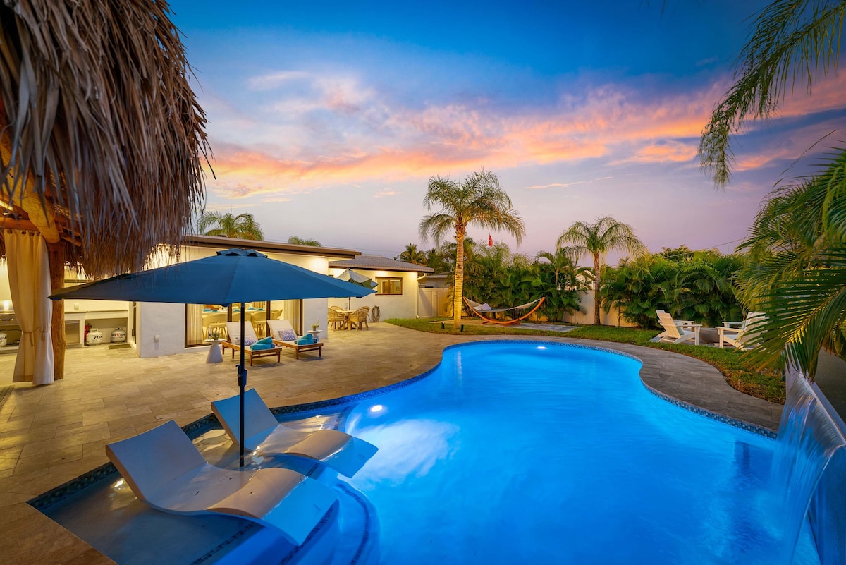 Welcome to our exquisite Fort Lauderdale retreat! This luxurious Airbnb offers an unforgettable vacation experience, combining elegance, comfort, and the ultimate in relaxation. Nestled in the vibrant city of Fort Lauderdale, our property boasts a heated pool, a charming pergola, outdoor fireplace, mini golf, game of cornhole, and so much more. Destinations: Fort Lauderdale Airport 14min Las Olas Blvd 6min Fort Lauderdale Beach 6min Hard Rock Casino 12min Sawgrass Mall 19 min