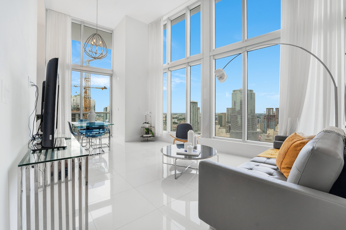 Our unique 5-star HIGH floor corner unit condo is fully furnished with an equipped kitchen located on one of the highest floors at the W Hotel which has the biggest SWIMMING POOL in Miami. We are centrally located along the Miami river with amazing sunset views. Walking distance to City Centre Mall, Whole Foods, restaurants and bars. Just a short drive to the design district & south beach. THIS IS THE PLACE TO STAY! Airport transfer, housekeeping, car rental available based on availability.