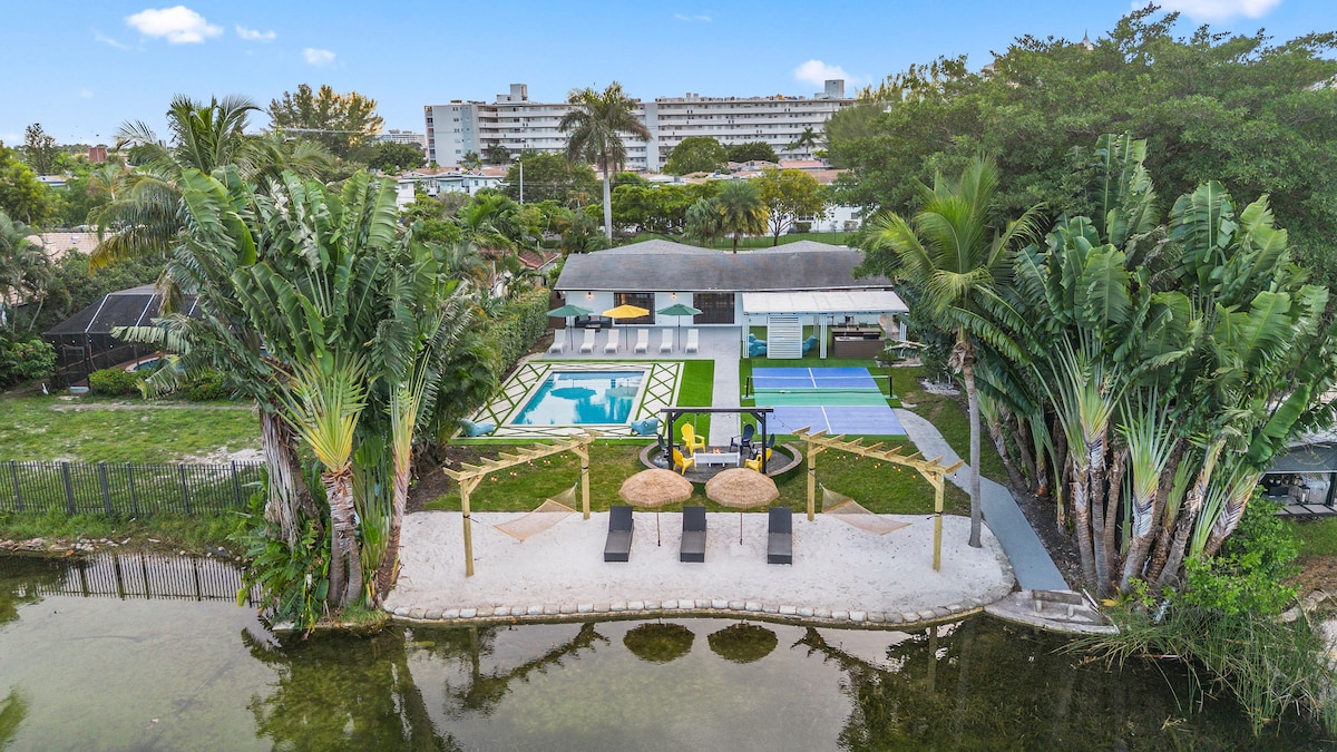 Escape to a unique Miami waterfront retreat where you can kayak from the backyard, unwind in a hot tub, and swim in a pristine Heated Pool. This quiet family-friendly haven offers a chance to spot local wildlife like ducks and tropical birds. Experience a trendy vibe, featuring a mini golf course, cornhole, pool table, multicade play system and so much more. With a clean, spacious interior and a central location near both Miami and Aventura, it’s perfect for a memorable getaway.