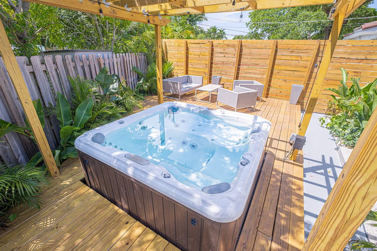 Villa Biscayne, a gorgeous, centrally located home is your private luxury resort in Miami. 1920s Spanish on the outside, bright and modern on the inside, this beautifully furnished villa is set at the heart of the Village of Biscayne Park. It’s the perfect place to work, relax in the lush tropical backyard, enjoy the pool and jacuzzi, and explore the city. When you're ready to explore, you can be on the beach, in Wynwood or the Fashion District in 10-15 minutes, and in South Beach in 20.