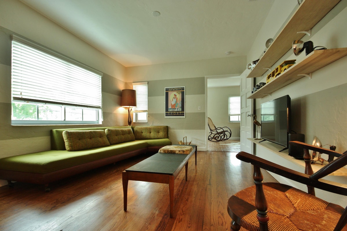Enjoy our peaceful and centrally-located bungalow. This duplex apartment is a beautiful and fully renovated tropical oasis close to all the great things Miami has to offer, in a quiet neighborhood. Comes fully stocked for longer stays with a kitchen, oven, microwave, fridge, utensils, coffee maker and all the linens and bath soaps. Get relaxed in our beautiful garden with many trees, flowers, and exotic plants that will attract butterflies, birds and even hummingbirds!
