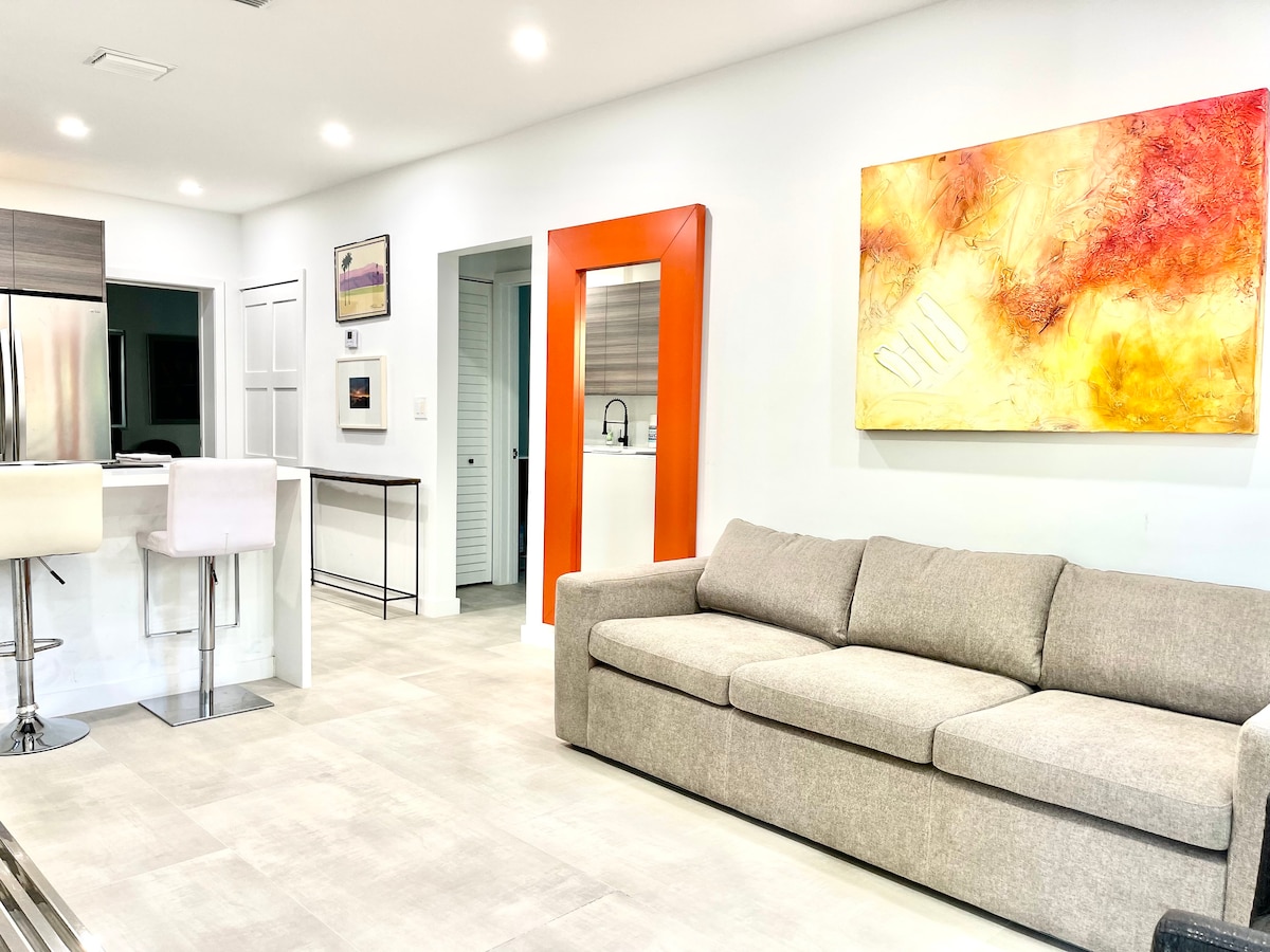 This unique and stylish retreat offers a blend of modern amenities, perfect for solo travelers, couples, or business visitors. Surrounded by trendy restaurants, boutique shops, and art galleries, it features a bedroom with a queen-sized bed for restful sleep and a living area with a cozy sofa and flat-screen TV. The fully equipped kitchen is ideal for any meal prep. High-speed Wi-Fi & air conditioning. A short drive from beautiful beaches, Wynwood Walls, the Design District, and downtown Miami.