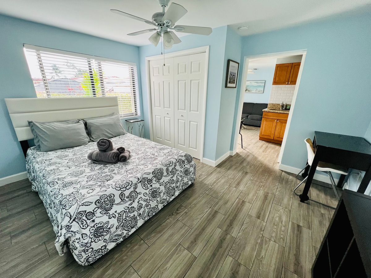 Beautiful studio near everything!!! 5 minutes from the Airpot, Wynwood, Design District, South Beach, Port, Brickell, AAA, - King Size Bed - Private parking -Fully stocked kitchen , wifi, Smart Tv - Cheap über ride to everywhere you want to go - 6 star hospitality - Everything you need is at the property already - Unit is 1 of 4 Airbnb on the property -$100 Pet fee -per stay. stay -NOTE: two pets, would be $150 per stay ( not apply for long-term stays)