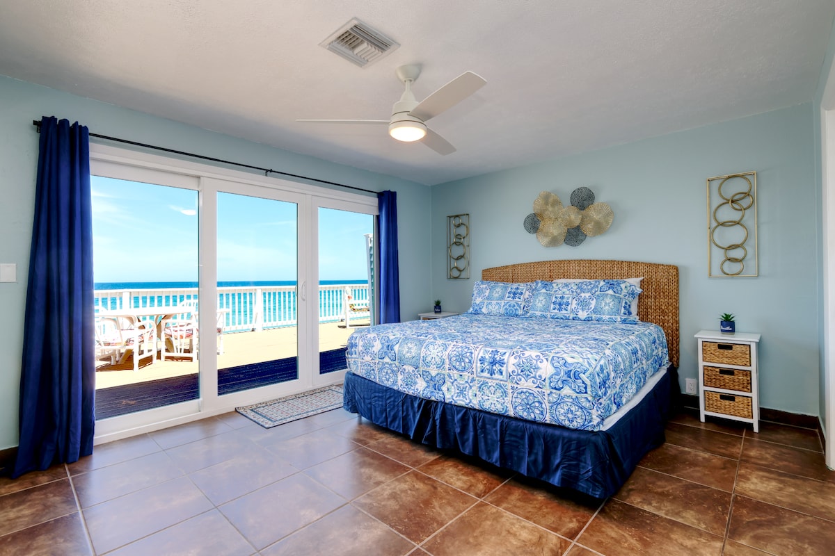 Enjoy the captivating ocean views, luxurious coastal décor, and breathtaking sunrises beachfront home has to offer. Glowing with elegance, this 3-bedroom, 2-bath house is located DIRECTLY on the ocean with a ground level patio to soak up both sunrises and sunsets. The stretch of white sand beach is completely private with access only to owners and guests. It is perfect for friends, families, or couples who crave a relaxing getaway. Early Check-in/ Late Check-out available (fee of $25/hr)
