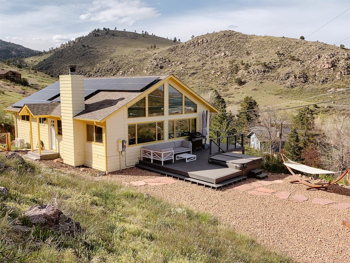 This beautiful, modern cabin, is showered in sunlight. Just 2.5 miles from downtown, yet a stones throw from all the outdoor adventures in the foothills, Horsetooth Reservoir, Poudre River, mountain biking & hiking. With apple trees, berries & gardens, this quiet country setting is one of the best locations in town. Soak in the Colorado sunshine w/ the passive solar design. Relax in the evenings taking in the mountain sunsets while enjoying a fire pit on the back porch.