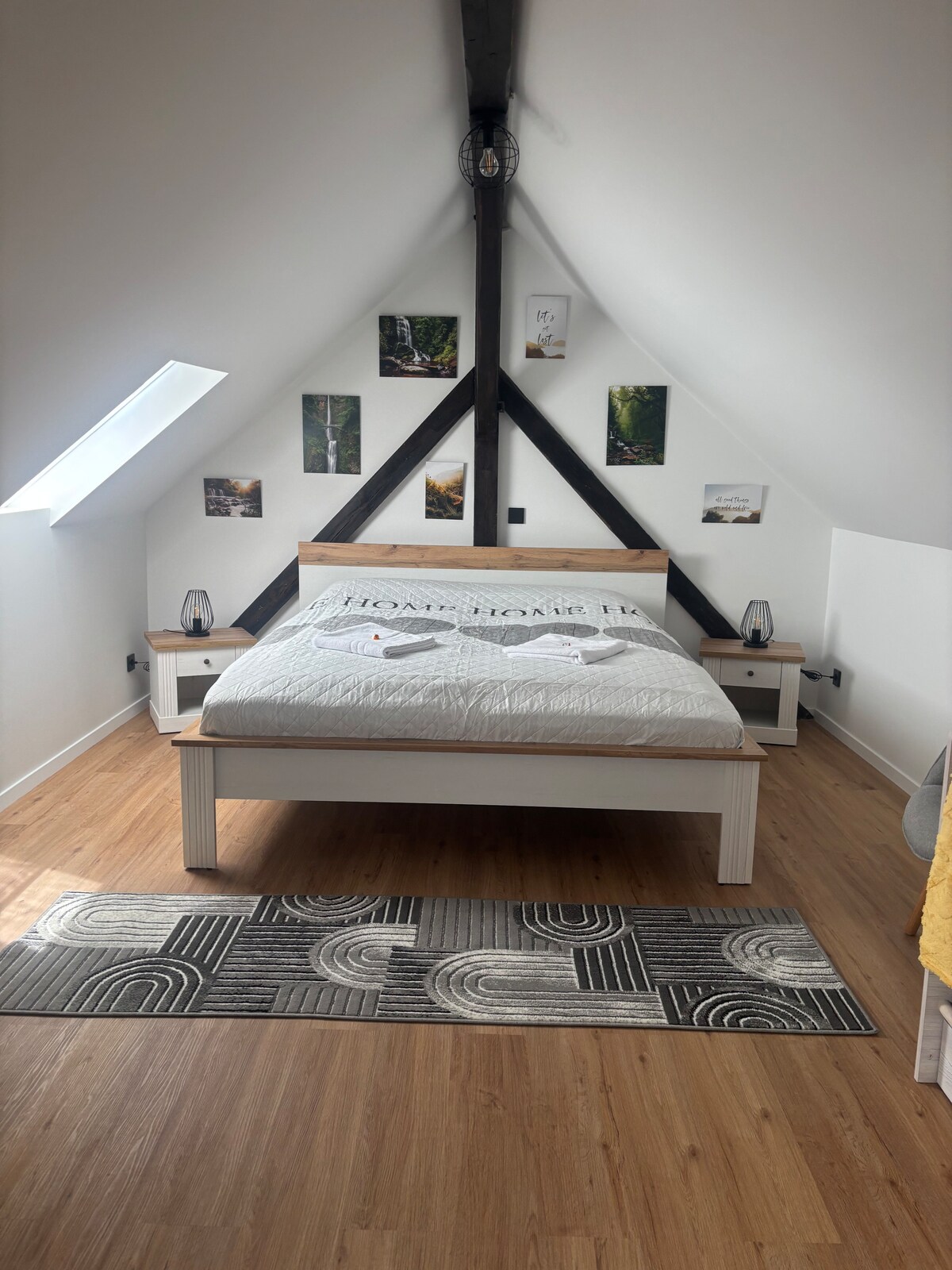 Dachgeschoss Wohnung 20 Autominuten von Potsdam und Berlin und 30 Zugminuten vom BER entfernt. Großzügige, vollausgestattete Designküche*, Badezimmer mit Agape Vieques Badewanne und passendem Waschbecken * , Schlafzimmer mit 2,70m großem Bett * , Fitnessraum kann als zweiter Schlafbereich genutzt werden. Hier ist ein 1,80m Doppelbett*Beamer mit App Vorinstallation für NETFLIX, Disney + und Amazon Prime Login, Spielsachen, Supermarkt mit Bäcker und Fleischer Getränkemarkt*Badeseen&Wandern