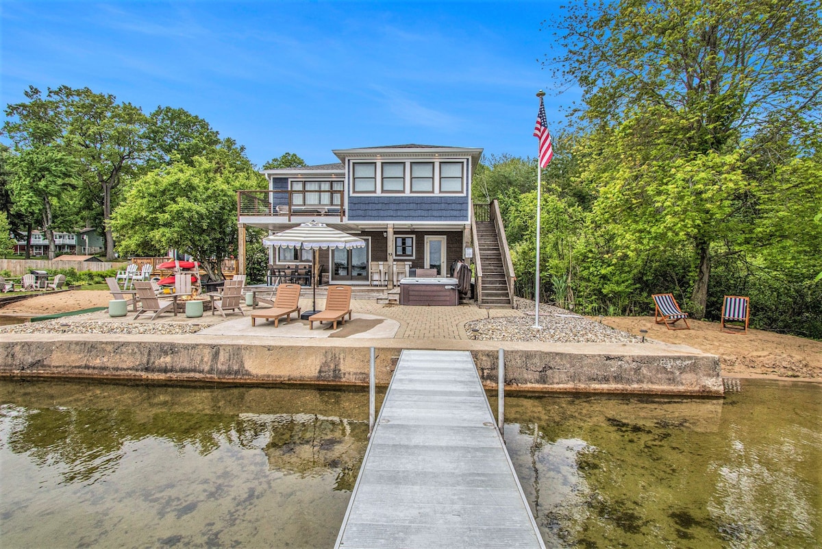 Waterfront property with a private hot tub, pool, and tennis court, making it an ideal destination for those seeking both relaxation and recreation. Visit beautiful Southwest Michigan and stay at the St. Joe Overlook. Take a swim in the pool, unwind in the hot tub, take the kayaks out for a river cruise, or sit by the fire. Enjoy this stunning location and top-notch amenities. A trip to the St Joe Overlook is the perfect place to gather & reconnect. Maximum Guest Count 16.