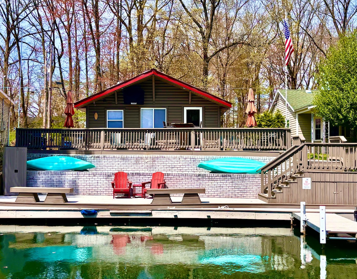 Pontoon INCLUDED in all rentals May 2026-Sept 2026! No extra fees for unlimited use of private pontoon, pier, paddle boards and more!! Rental price of our lakefront house includes the pontoon, deck, yard and endless activities!! Take the pontoon for a cruise, fish, swim, paddle board, kayak, watch the wildlife or have a bonfire!! Travel 15 minutes to the Indiana Dunes or 10 minutes to downtown Valpo. You will also be able to cook delicious meals on the propane grill & fully stocked kitchen