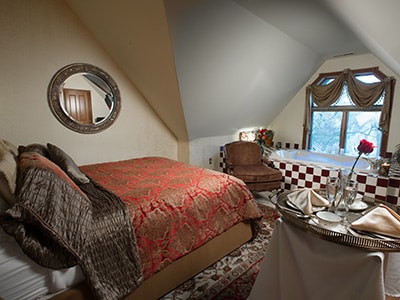 TULIP FESTIVAL May 6- Pamper Yourself in Luxury, including a full English breakfast! The Garden Suite boasts stunning views of the Kalamazoo River and lush landscapes from the bedroom and private deck. The bright and cozy suite features a queen-sized bed, a walk-in closet with mini-refrigerator, a private bath with shower, and is the only suite that doesn’t require climbing stairs. Just feet away from the common area living space and communal pantry Luxury, privacy, and hospitality await you