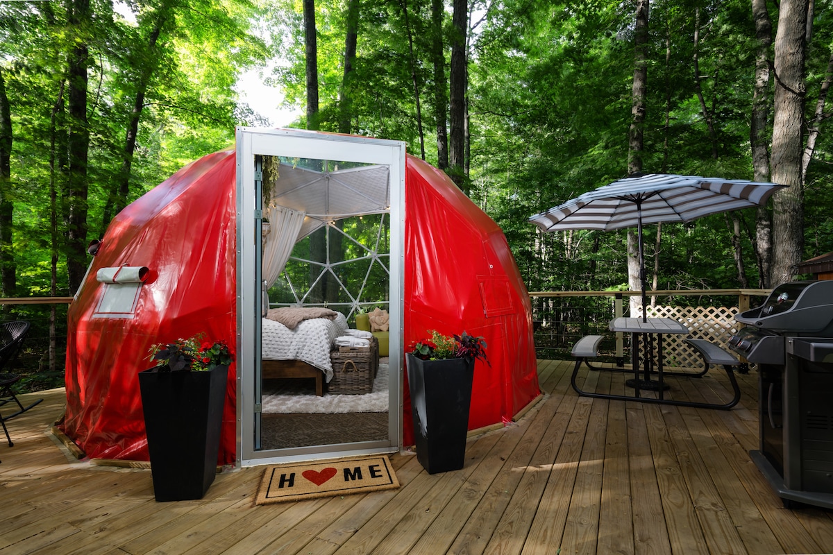 Our Airbnb prices reflect the inclusion of the Airbnb service fee. Explore Sleeping Bear Dunes, Traverse City, and more from the luxury of your own geodesic dome! Experience this unique stay, nestled away in the charming small town of Lake Ann. This is the perfect place to kick up your feet and unwind. ✔ No cleaning fee ✔ Complimentary stocked mini-fridge ✔ Large panoramic window ✔ Smart TV ✔ Amenities (grill, hot tub, fire pit) ✔ High speed Wi-Fi ✔ Free parking Inquire about our website!
