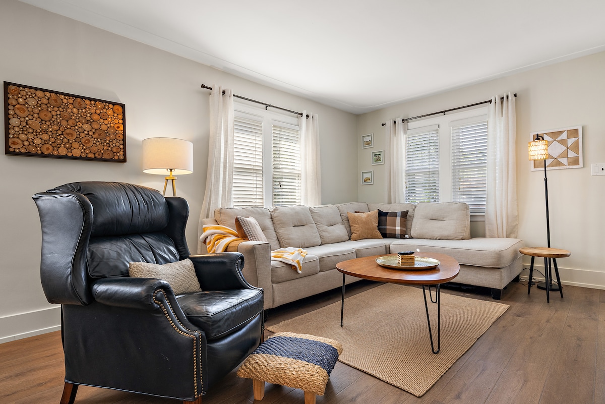 The Oakwood Cottage is a thoughtfully designed getaway perfect for couples, small families, or a few friends to unwind and enjoy a slower pace of life. A classic 1930s bungalow with modern touches and décor throughout, this charming retreat will serve as an inviting home base to explore the hidden gems of Muskegon and West Michigan in every season.